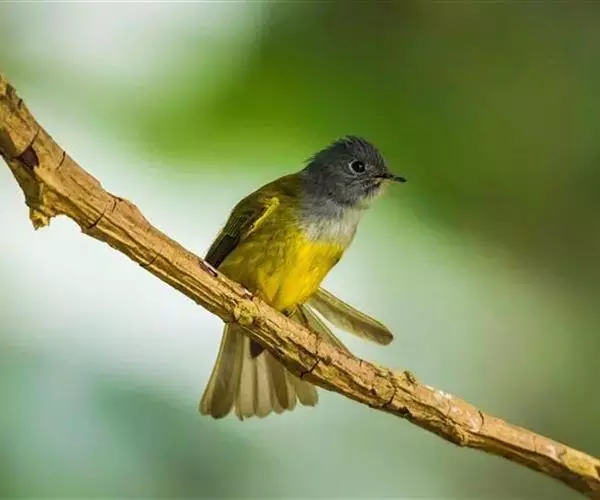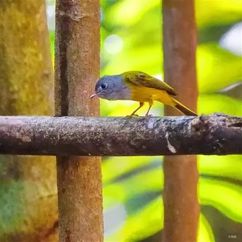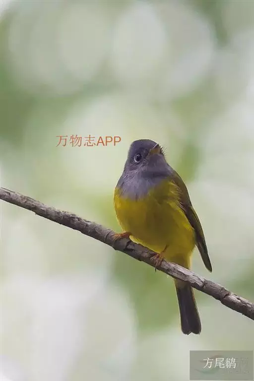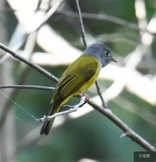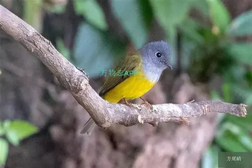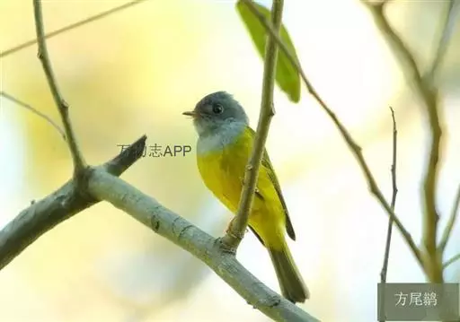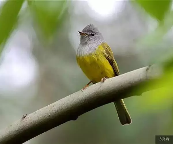 方尾鹟(学名:Culicicapa ceylonensis):体重6-11克,体长102-130毫米。是一种体型小而独具特色的鹟。头偏灰,略具羽冠,嘴扁平,嘴基宽阔几成等边三角形,嘴须发达长而多,几达嘴端口;头顶至后颈黑灰色,背橄榄绿色,两翅和尾黑灰色,翅上覆羽和飞羽羽缘橄榄黄绿色。喉、胸灰色,其余下体黄色。虹膜褐色,嘴上嘴黑色,下嘴角质色,脚黄褐色。