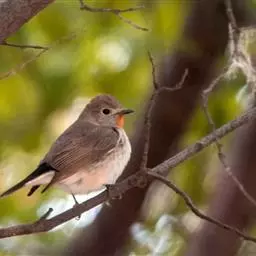 橙胸姬鹟:体长12-16厘米,是一种体型略小的林栖型鹟。尾黑而基部白,上体橄榄褐色,额具一白色横带,…