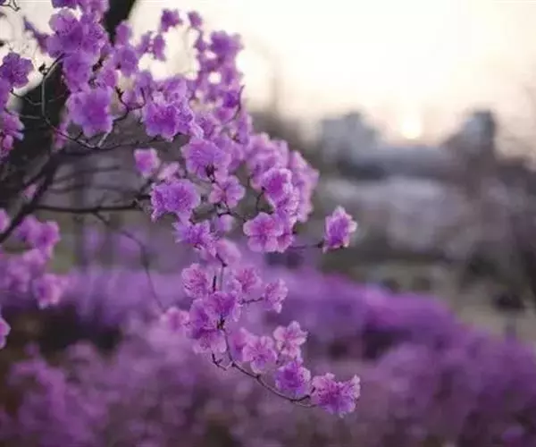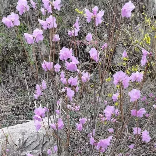 迎红杜鹃(学名:Rhododendron mucronulatum)杜鹃属,是一种落叶灌木,高1-2米,分枝多,生于山地灌从;花期4-6月,果期5-7月。产中国内蒙古(北达满洲里)、辽宁、河北、山东、江苏北部。生于山地灌丛。蒙古、日本、朝鲜、俄罗斯(西伯利亚东南、阿穆尔)有分布。因其花长的美丽,具有栽培和园艺价值。