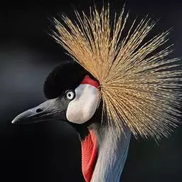 东非冕鹤是大型涉禽。体长127厘米。额部向外凸出,有乌黑色绒羽,…