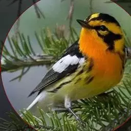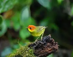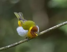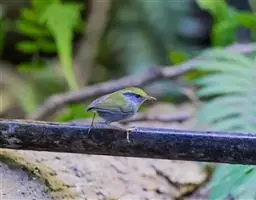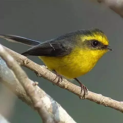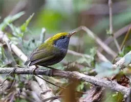 黑脸鹟莺:体长10厘米,是有特色的体小而多彩的莺鸟。粗眉纹,颏、喉及尾下覆羽黄色,脸罩黑,…