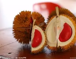 榴梿,是一种锦葵目、木棉科巨型的热带常绿乔木,叶片长圆,顶端较尖,聚伞花序,花色淡黄,果实足球大小…