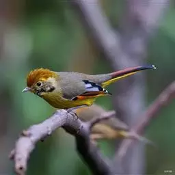 银耳相思鸟小型鸟类,体长14~18厘米。头顶黑色,耳羽银灰色,前额橙黄色;外侧飞羽橙黄色,基部朱红色,…