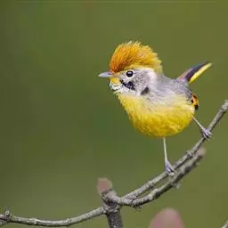 黄喉雀鹛是雀眉科、拟希鹛属小型鸟类,体长11-12厘米。头顶浅黄色具黑色鳞状斑,…