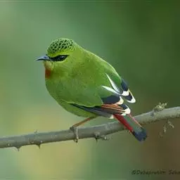 火尾绿鹛是莺科、绿鹛属小型鸟类,体长11-14厘米。上体绿色,头顶至枕具黑色鳞状斑,眼先和眼后黑色,…
