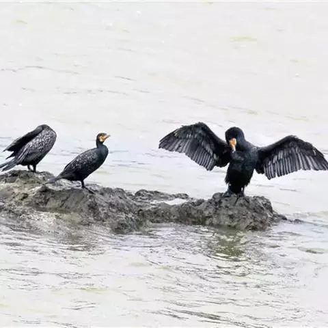 双冠鸬鹚是鹈形目鸬鹚科的鸟类,鸟嘴强而长,上嘴两侧有沟,嘴端有钩,适于啄鱼;下嘴基部有喉囊;鼻孔小,…