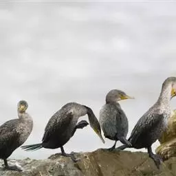 海鸬鹚:俗名乌鹈。典型的海上鸬鹚。体长约70厘米,体羽黑色具光泽。脸红色,与红脸鸬鹚甚似,但繁殖期…