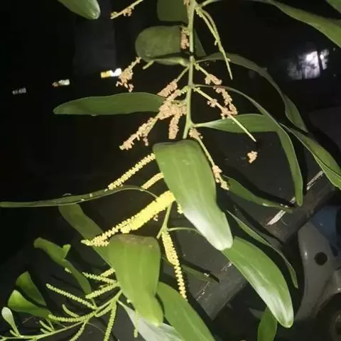 大叶相思是豆科,相思树属常绿乔木,枝条下垂,树皮平滑,灰白色;叶片镰状长圆形,两端渐狭,穗状花序,…
