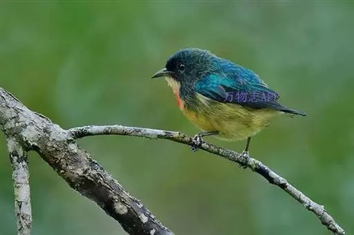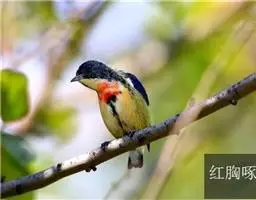 红胸啄花鸟(学名:Dicaeum ignipectus):体重5-10克,体长60-92毫米。体形纤小。雄鸟上体呈辉亮的金属绿色;下体棕黄,胸部具一朱红色块斑,极易与其他啄花鸟区别。雌鸟上体呈橄榄绿,下体棕黄色。虹膜褐色,嘴褐黑色或角灰色,跗蹠暗褐色。幼鸟上嘴褐黑,下嘴红色;跗蹠呈铅灰色。
