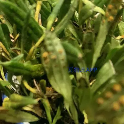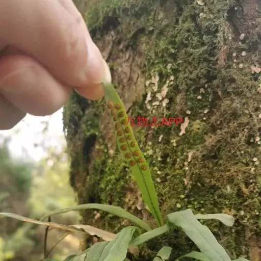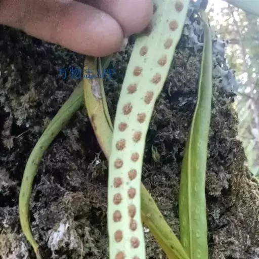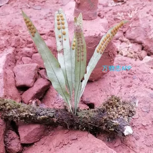 植株高约8~20厘米。根状茎横走,密被披针形鳞片;鳞片褐棕色,大部分不透明,仅叶边1~2行网眼透明,具锯齿。叶柄长1~3厘米,禾秆色;叶片线状披针形,或狭披针形,中部最宽0. 5~1. 3厘米,渐尖头,基部渐变狭并下延,干后黄绿色至淡黄绿色,或淡绿色至褐色,纸质。主脉上下均隆起,小脉不见。孢子囊群圆形或椭圆形,彼此相距较近,成熟后扩展几密接,幼时被圆形褐棕色的隔丝覆盖。