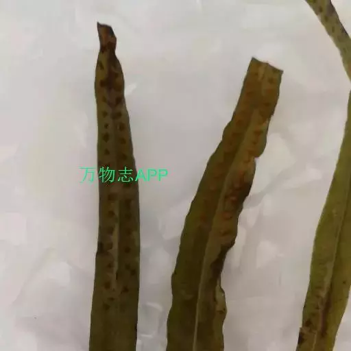 药材性状:常多株卷成团。根茎横生,柱状,被多数须根与鳞片。叶线状披针形,土黄色至绿色,卷曲皱缩,沿两边向背面反卷。孢子囊群10~20余个,于叶背面排列成2行,味淡弱,根茎味苦。以干燥、绿色、背面有棕色孢子囊群者为佳。
