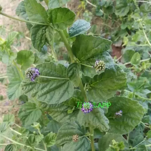 一年生直立草本,高60-150厘米。枝坚硬,疏被白色绒毛,有明显腺点。叶为单叶,有时有1片长约1-2厘米的侧生小叶;托叶镰形,长7-8毫米;叶柄长2-4.5厘米,有腺点;小叶柄长2-3毫米,被白色绒毛;叶宽卵形,长4.5-9厘米,宽3-6厘米,先端钝或锐尖,基部圆形或心形,边缘有粗而不规则的锯齿,质地坚韧,两面有明显黑色腺点,被疏毛或近无毛。