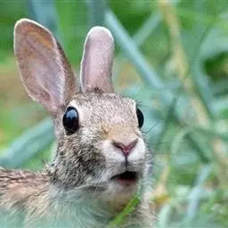 家兔(学名:Oryctolagus cuniculus f. domesticus):是由一种野生的穴兔经过驯化饲养而成的。大型的家兔如公羊兔,体重可达8千克。而体型较小的荷兰侏儒兔,成年时的体重还不到1千克。上唇分裂,称为兔唇,因而常暴露出上门齿。前肢短,肘部向后弯曲,前爪有5趾。后肢长而强壮,膝部向前弯曲,后爪4趾,第一趾退化,善于奔跑和跳跃。耳朵长,尾巴短。全身被毛,体表的毛光滑柔软,有很好的保温作用。