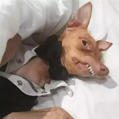 耳中等大小,直立,耳尖呈圆形,棕褐色眼睛中等大小,呈卵圆形。眼睛中等大小,不突出,眼圈为暗黑色,眼角清晰。嘴鼻部优美且紧凑,缺毛,为先天性特征。胸部宽度适中,向下逐渐变细,在前肢之间放松。后驱的肌肉发达且结实,但宽度略小于肩部。体躯比卡狄犬略小 。