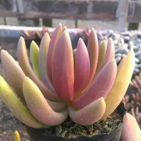 苯巴蒂斯是景天科拟石莲花属的多肉植物,由大和锦和静夜杂交而来,国内常简称为“苯巴”。莲座形态紧凑周正,…