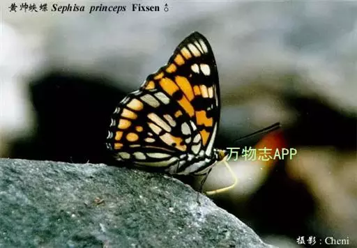 黄帅蛱蝶(拉丁名:Sephisa princeps (Fixsen)) 黄帅蛱蝶 为鳞翅目、蛱蝶科、帅蛱蝶属节肢动物。分布于黑龙江、河南、湖北、四川、陕西、甘肃、浙江、福建。此蝶种一年只发生一个世代。
