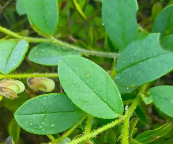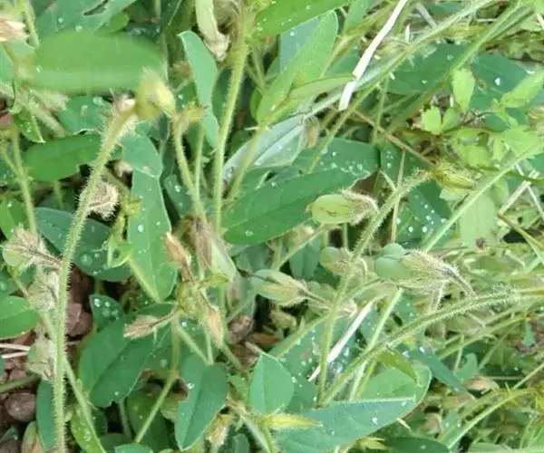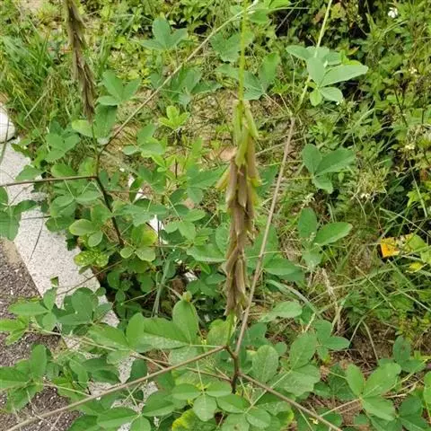 干燥全草,茎圆形,全体有黄棕色茸毛。叶片卷曲,多脱落,呈椭圆形或卵形,黄绿色。枝端尚带荚果,种子大多脱落。带根者,根蜿蜒而长,圆形,少分枝,须根细长,表面土黄色。