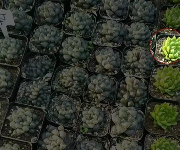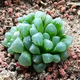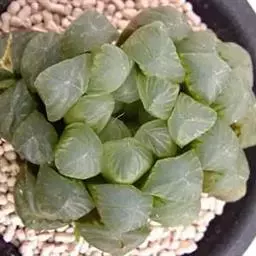 樱水晶,多年生肉质草本植物,肉质叶呈紧凑的莲座状排列,叶片肥厚饱满,翠绿色,上半段呈透明或半透明状,有深色的线状脉纹,在阳光较为充足的条件下,其脉纹为褐色,叶顶端有细小的“须”。 盛花期在春秋季。