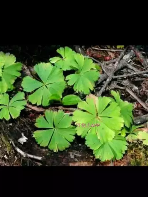 独叶草 叶基生,有长柄,叶片心状圆形,宽3.5-7厘米,五全裂,中、侧全裂片三浅裂,最下面的全裂片不等二深裂,