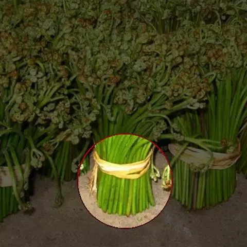 野韭菜性味咸涩寒,《千金·食治》载“宜肾、主大小便数,去烦热”。《本草拾遗》载“生毛发。”外形比人工种植的韭菜更粗壮。