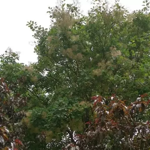毛黄栌(学名:Cotinus coggygria Scop. var. pubescens Engl.)是漆树科,黄栌属黄栌的变种,灌木,高可达5米。叶柄短,叶多为阔椭圆形,稀圆形,叶背、尤其沿脉上和叶柄密被柔毛,圆锥花序,无毛或近无毛,花杂性,花萼无毛,裂片卵状三角形,花瓣卵形或卵状披针形,花药卵形,与花丝等长,花盘紫褐色;子房近球形,果肾形,无毛。