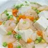 主料:豆腐 400克 辅料:虾仁 150克 毛豆 50克