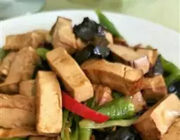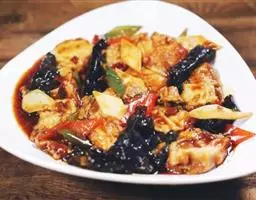 山珍豆腐是一道川菜,主料有豆腐,调料有大葱、姜、植物油、酱油、料酒。