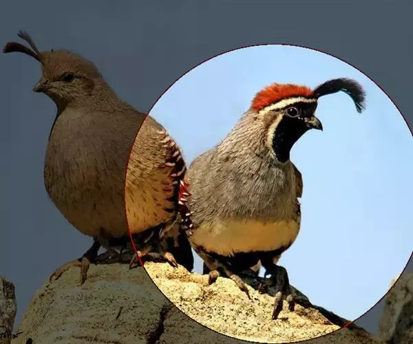 代表物种:普通鹌鹑雄性成鸟(夏羽):额部几全为栗黄色头顶、枕部和后颈黑褐色,羽端深栗黄色;中央具一条狭窄的白色冠纹。眉纹白色,从前额后达颈部;眼圈,眼先和颊部均赤褐色;耳羽栗褐色。上背为浅的黄栗色,具黄白色羽干纹;下背至尾上覆羽黑褐色,多具两端尖的浅黄色羽干纹;内外翈具黄褐色波状细横斑;肩羽亦然。两翅大部为带淡黄的橄榄色,杂以黄白色横斑;第一初级飞羽外翈狭,缘以淡黄色,其它初级飞羽的外翈均具浅赤褐色波状横斑;次级飞羽的内外翈亦具同色横斑,向内转浅。尾羽黑褐色,白嘴基越眼而达颈侧;额头侧及颏具白而略带浅黄色的羽干纹和羽缘,并具赤褐色横斑。颏、喉和颈的前部赤褐色,颊部和眼先的赤褐色连在一起;从颈部开始,伸出一个黑褐宽条,沿中线至喉部中央,扩大成黑褐色锚状纹,两侧向上延伸,几与耳羽连接。上胸灰白沾栗,羽干白色;颈侧和胸侧黑褐,杂以栗褐色,并具明显的白色羽干纹;两胁栗褐,杂以黑色,具更宽的白色羽干纹;下胸以至尾下覆羽灰白。