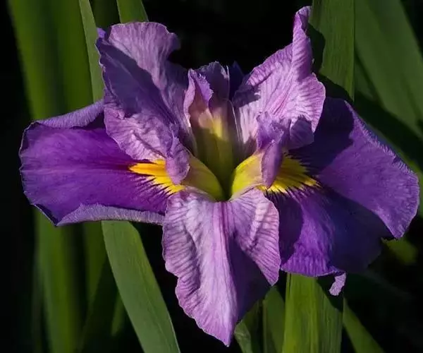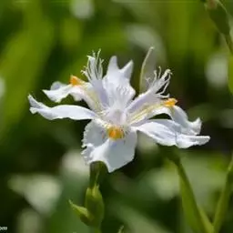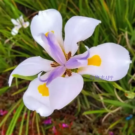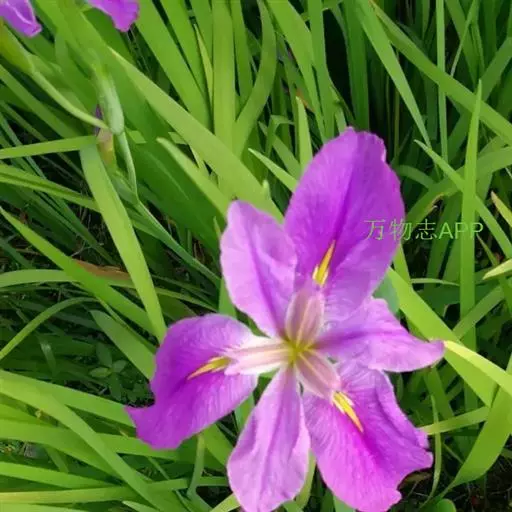 双色野鸢尾为多年生草本植物,叶子呈剑状淡绿色。…