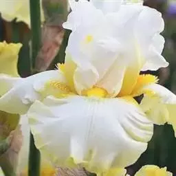 形态特征:垂瓣中央有髯毛(胡须状)及斑纹。(如:德国鸢尾、香根鸢尾、银苞鸢尾、矮鸢尾)
