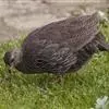雌鸟上体黑褐,具淡黄色点斑,羽端白;下体污黄,具黑褐横斑,腹部散有白点;翅和脚上羽毛亦白。