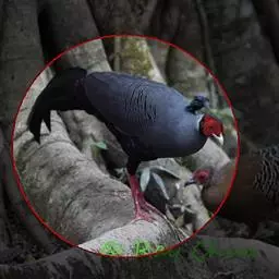 血雉雉科血雉属鸟类,别名血鸡、松花鸡,血雉的雄鸟大覆羽、尾下覆羽、尾上覆羽、脚、头侧、腊膜为红色,…
