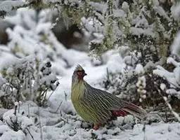 黄腹角雉:是鸟纲、雉科中国特产的一种鸟类。体长约50-65厘米。雄鸟上体栗褐色,…