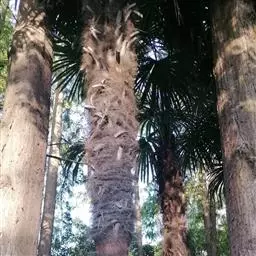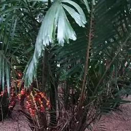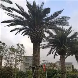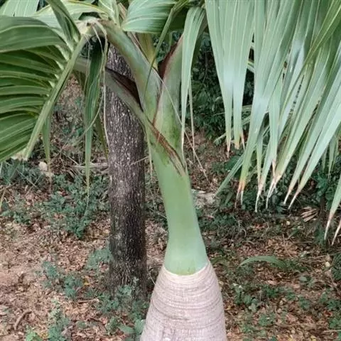 棕榈 栽培土壤要求排水良好、肥沃。棕榈根系较浅,无主根,种时不宜过深,栽后穴面要保持盘子状。棕榈幼年阶段生长十分缓慢,且要求适当的荫蔽。其茎长出土壤表面约需3-5年,形成掌状有皱折的正常叶片要3-4年,投产时间要在8年以上,而此时榈树高度仅1.3-1.5米这样缓慢的生长过程,在裸露地无荫蔽的条件下尤为明显。同一土壤和品种,在为全光照1/4-1/5的光强下比1/2的光强生长旺盛。投产前,年生长过程的特点表现为生长期,生长量小,速生期不够明显。在幼年阶段,棕榈的这一特性在品种之间基本上是一致的。为了加快棕榈的生长,在整个幼年阶段需要进行较长的持续管理。特别是当年新叶生长的5-9月,由于棕榈高、径生长几乎是同期进行,初期生长主要依靠前期积累的光合产物的供给。