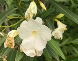 白花夹竹桃是夹竹桃科、夹竹桃属植物夹竹桃的栽培品种。常绿直立大灌木,枝条灰绿色;嫩枝条具稜,被微毛,…