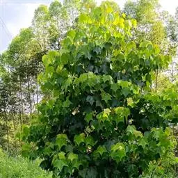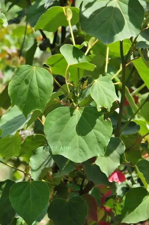 常绿乔木,高达30米,嫩枝有褐色柔毛,老枝变秃净,节膨大,有环状托叶痕。叶革质,阔卵形,长8-13厘米,宽5-9厘米,先端渐尖,基部阔楔形,全缘或幼叶为掌状3浅裂,上面深绿色,发亮,下面无毛,常有细小瘤状突起,掌状脉3-5条,在上面很显著,在下面隆起;叶柄长3-5厘米,初时有柔毛,以后变秃净;托叶狭矩圆形,稍弯曲,长2-4厘米,宽8-13毫米,被柔毛,早落。