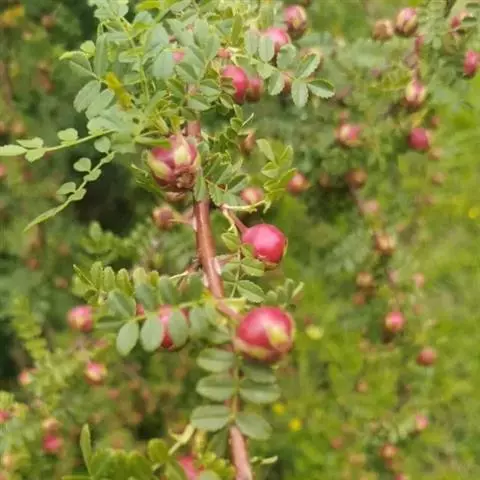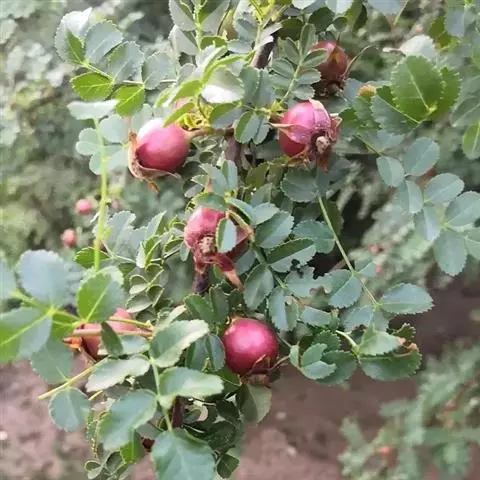 刺蔷薇:灌木,高1-3米;小枝圆柱形,稍微弯曲,红褐色或紫褐色,无毛,有细直皮刺。小叶片宽椭圆形或…
