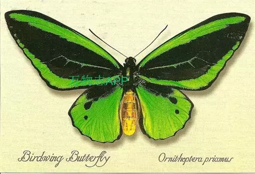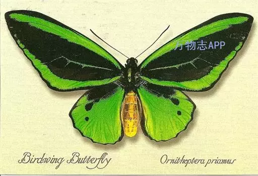 绿鸟翼凤蝶:又名东方之珠蝶,拉丁文学名:Ornithoptera priamus ( Linnaeus , 1758 ),凤蝶科鸟翼凤蝶属的一个物种。是印度尼西亚国蝶,也世界上非常珍稀的蝶类昆虫之一。为一种雌雄异体的昆虫。