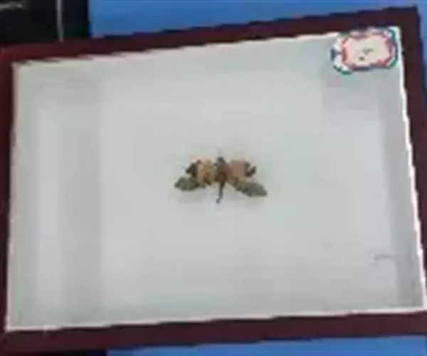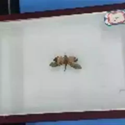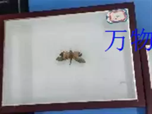 腹部是黄色的。头和胸是黑色的。胸腔下部有红色的毛发。