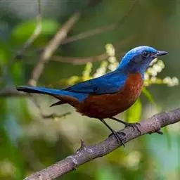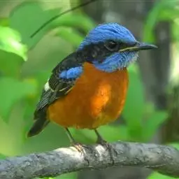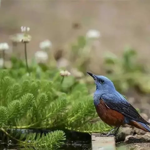 栗腹矶鸫(学名:Monticola rufiventris)是鸫科、矶鸫属小型鸟类,体长20-25厘米。雄鸟上体呈辉亮的钴蓝色,两翅黑褐色,喉蓝黑色,其余下体栗红色。雌鸟上体橄榄褐色,背具黑色鳞状斑,下体棕白色密杂以黑褐色横斑,黑白相衬,极为醒目,特征明显,野外不难识别。