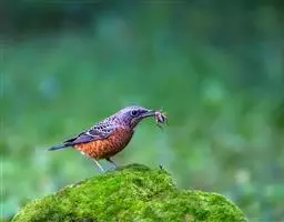 栗腹矶鸫在繁殖期间主要栖息于海拔1500-3000米的山地常绿阔叶林、针阔叶混交林和针叶林中,尤以陡峻的悬崖和溪流深谷沿岸的针叶林和针阔叶混交林及其林缘地带较常见。常单独或成对活动,偶见集成小群。多停在乔木顶枝上,尾上下来回摆动,偶尔也将尾呈扇形散开。主要以甲虫、金龟子、蝗虫、蚱蜢、毛虫等昆虫为食,也吃蜗牛、软体动物、蜥蜴、蛙、水生昆虫和小鱼等其他动物。分布于中国、巴基斯坦、不丹、印度、盂加拉国、缅甸、泰国、老挝和越南。