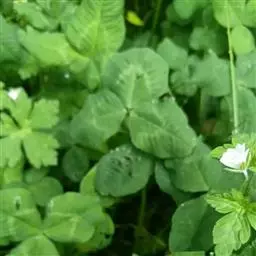 白车轴草,豆科车轴草属的多年生草本植物,茎贴地匍匐;叶柄直立,小叶心形,边缘具细齿,叶脉明显,…