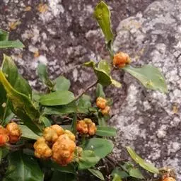 栀子花,花朵簇状约30枚瓣,奶油色,中心黄色;花径12cm;气味果香.