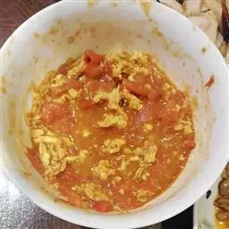 倒入装有面粉的盆里面;