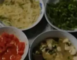榨菜,酸豆角香葱切碎。