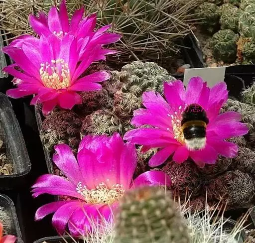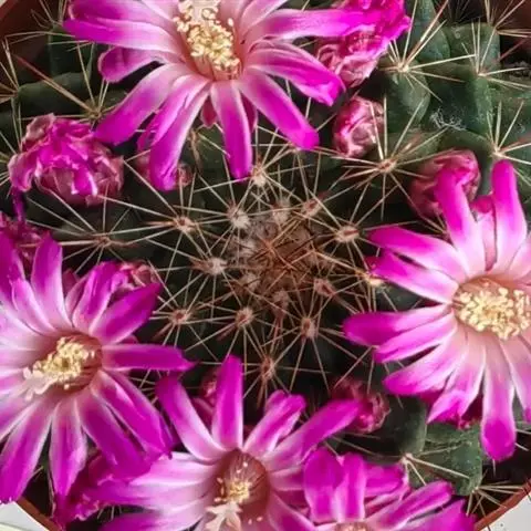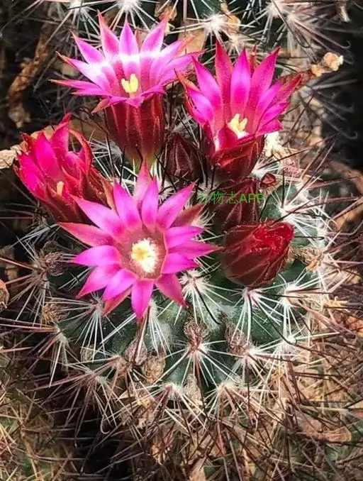 5、旺盛丸:植株灰绿色,球形或筒状,花大,暗粉或深红色;
