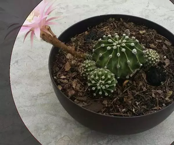 3、冬季,要把盆栽仙人球移入室内,室温在5℃以上就能安全越冬。这时,家庭盆栽的仙人球可以放在室内玻璃缸内保暖过冬,也可以用双层塑料袋套住保暖过冬。冬天,仙人球处于休眠期,盆土要相对偏干一些,否则容易烂根。