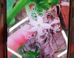 一年生蔓生藤本;茎、枝粗壮,具明显的棱沟,被长而密的白 色或淡黄褐色长柔毛。卷须较粗壮,具短柔毛,2歧,叶柄粗,长3-12厘米,粗0.2-0.4厘米,具不明显的沟纹,密被柔毛;叶片纸质,轮廓三角状卵形,带白绿色,长8-20厘米,宽5-15厘米,两面具短硬毛,脉上和背面较多,3深裂,中裂片较长,倒卵形、长圆状披针形或披针形,顶端急尖或渐尖,裂片又羽状或二重羽状浅裂或深裂,边缘波状或有疏齿,末次裂片通常有少数浅锯齿,先端钝圆,叶片基部心形,有时形成半圆形的弯缺,弯缺宽1-2厘米,深0.5-0.8厘米。