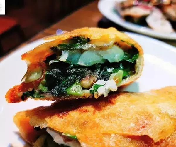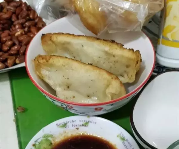 锅贴馅料同样有韭菜和猪肉,只是包的手法不同。包好之后,下锅煎成金黄色,就可以上碟。值得一提的是,这里吃锅贴是没有配上姜丝的。