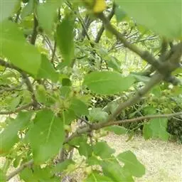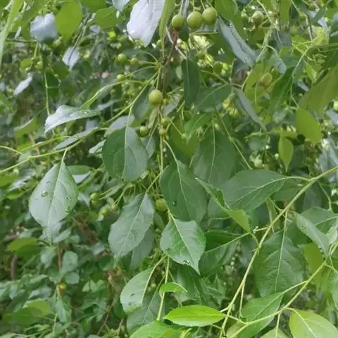 落叶小乔木,树高达7米,树冠开张,树干暗褐色。嫩枝或褐或红褐色,被短柔毛,以后逐渐脱落。叶卵圆或椭圆形,长5-10厘米,宽3-6厘米,先端急尖,基部宽楔形或近圆形,边缘细钝锯齿,叶正面深绿色,背面灰绿色,嫩叶两面均被短柔毛;叶柄长2-3.5厘米,被短柔毛。
